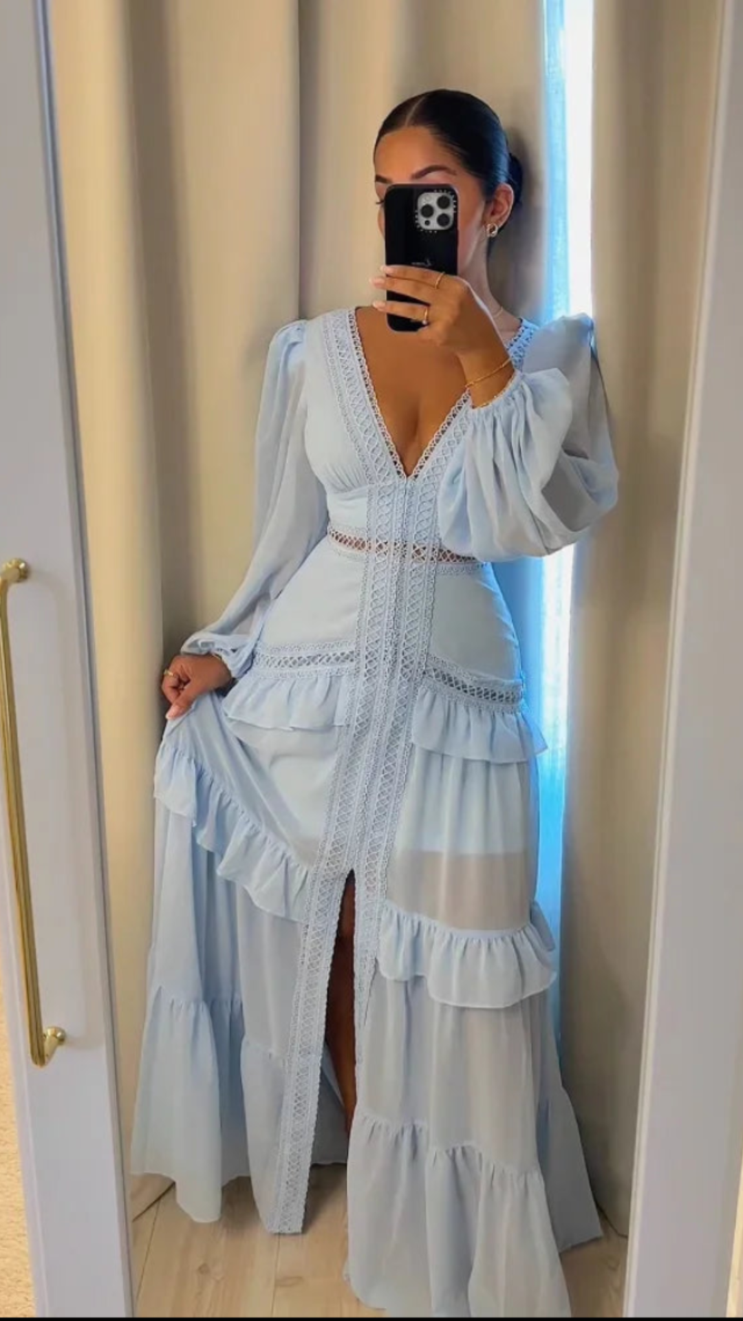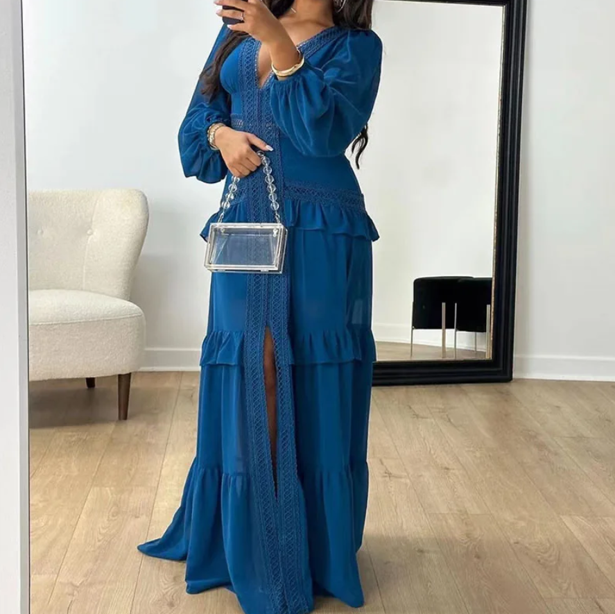 Maxi Valentina™ jurk, elegantie met een bohemain touch. Laat hoofden draaien met de betoverende Valentina™ jurk. De perfecte combinatie van vrouwelijke elegantie en boho flair. Deze jurk is een absolute musthave voor jou kledingkast. Specificaties: Diepe V-hals met subtiele kanten afwerki...