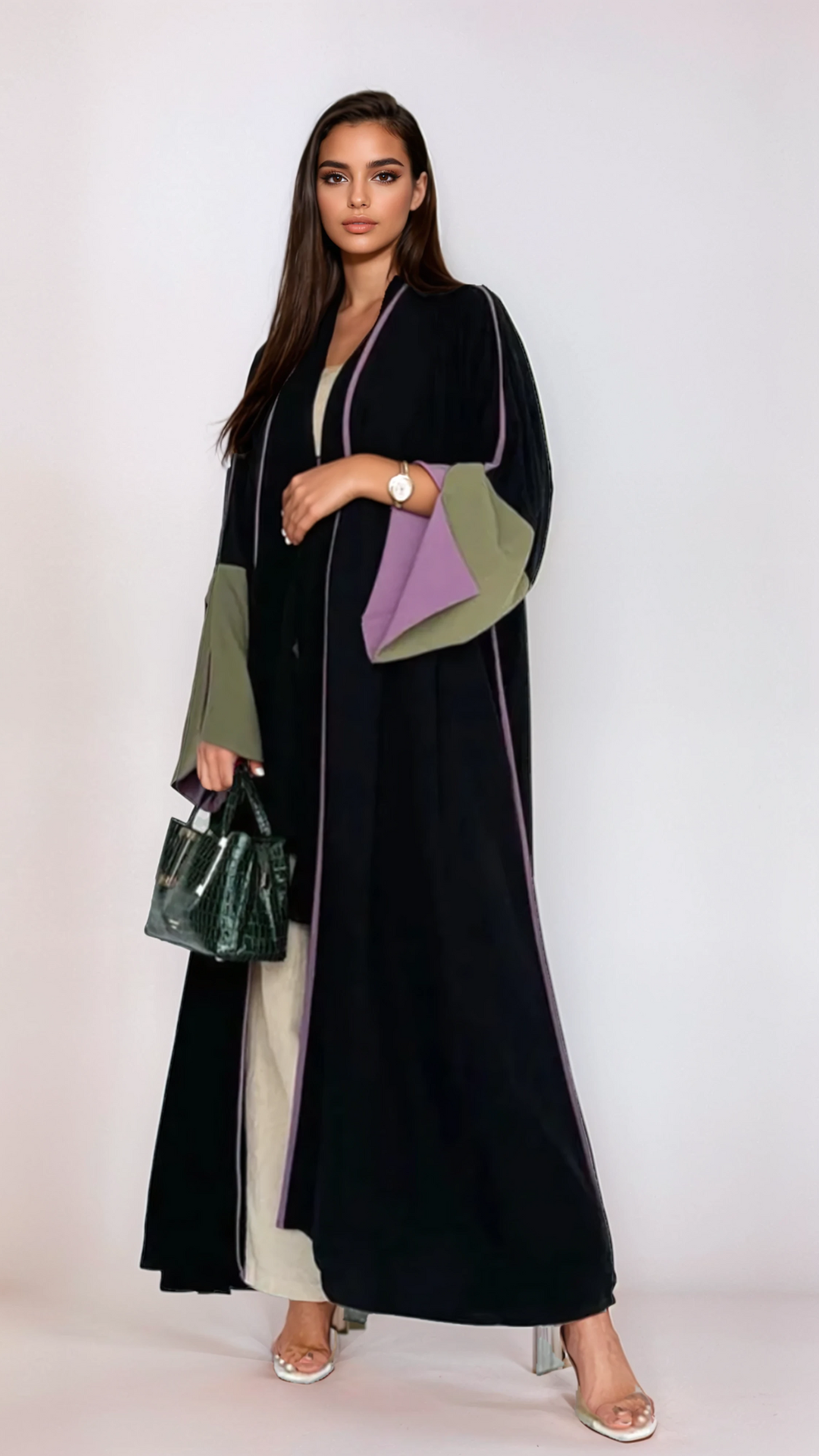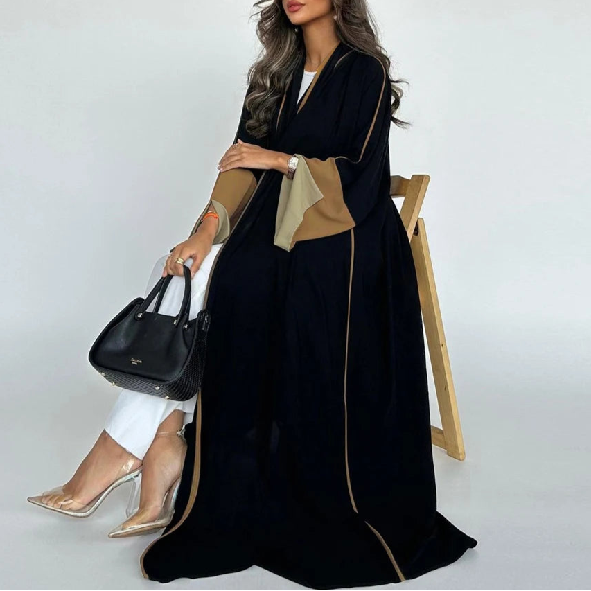 Ontworpen met een open voorkant biedt deze abaya een veelzijdige en soepel vallende pasvorm die elk lichaamstype flatteert. Ideaal om in laagjes te dragen en eenvoudig te combineren van een casual dagoutfit tot een elegante avondlook.